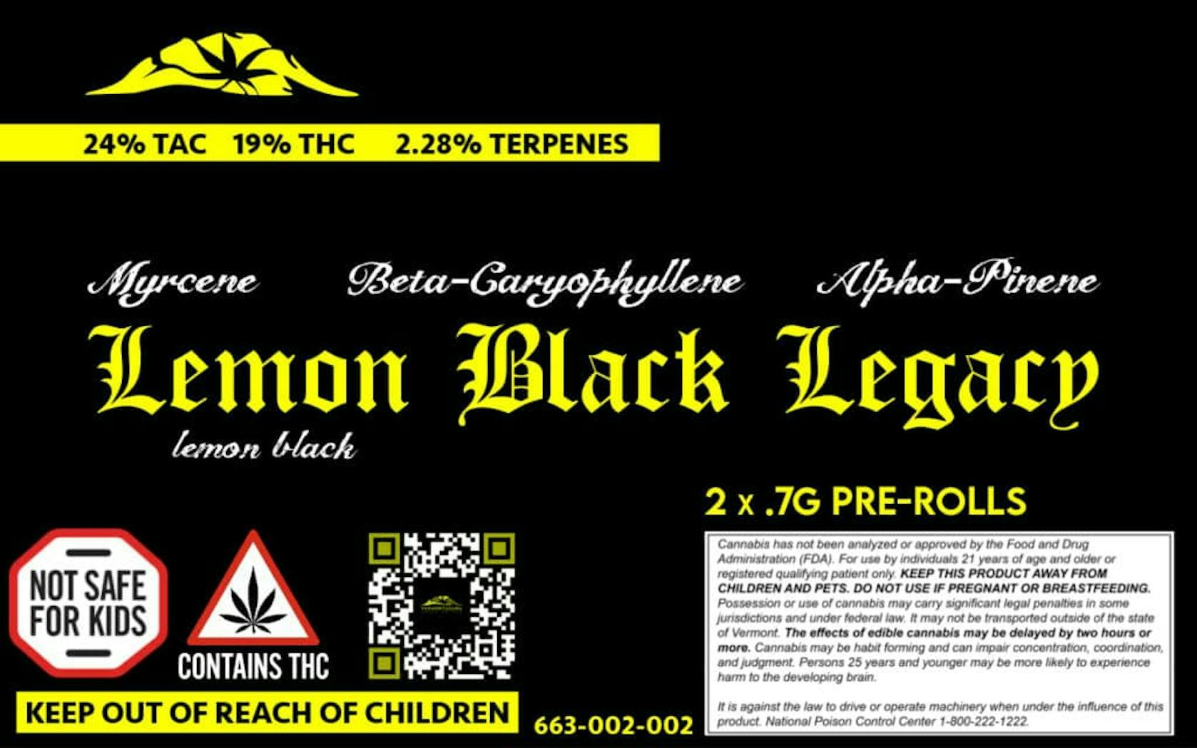 Lemon Black Legacy .7/2pk preroll